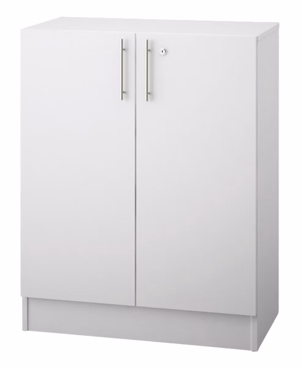 Låsbart (inkl. 2 nycklar). 1 hyllplan. Mått: B80xD42xH101 cm. Stomme i melamin. Dörrar i högtryckslaminat.Vit