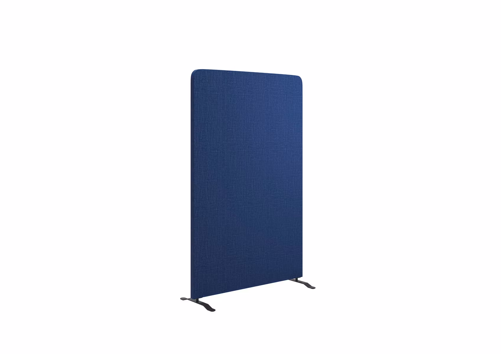 Ljudabsorbent för golv, avdelare/skärmvägg och anslagstavla. Ram i massivt trä, ljudabsorbent av 40 mm Rockwool. Tyg blå Cara i 100 % polypropen, certifierat med EU-blomman. Mått: H155xB100 cm. Fötter ingår.