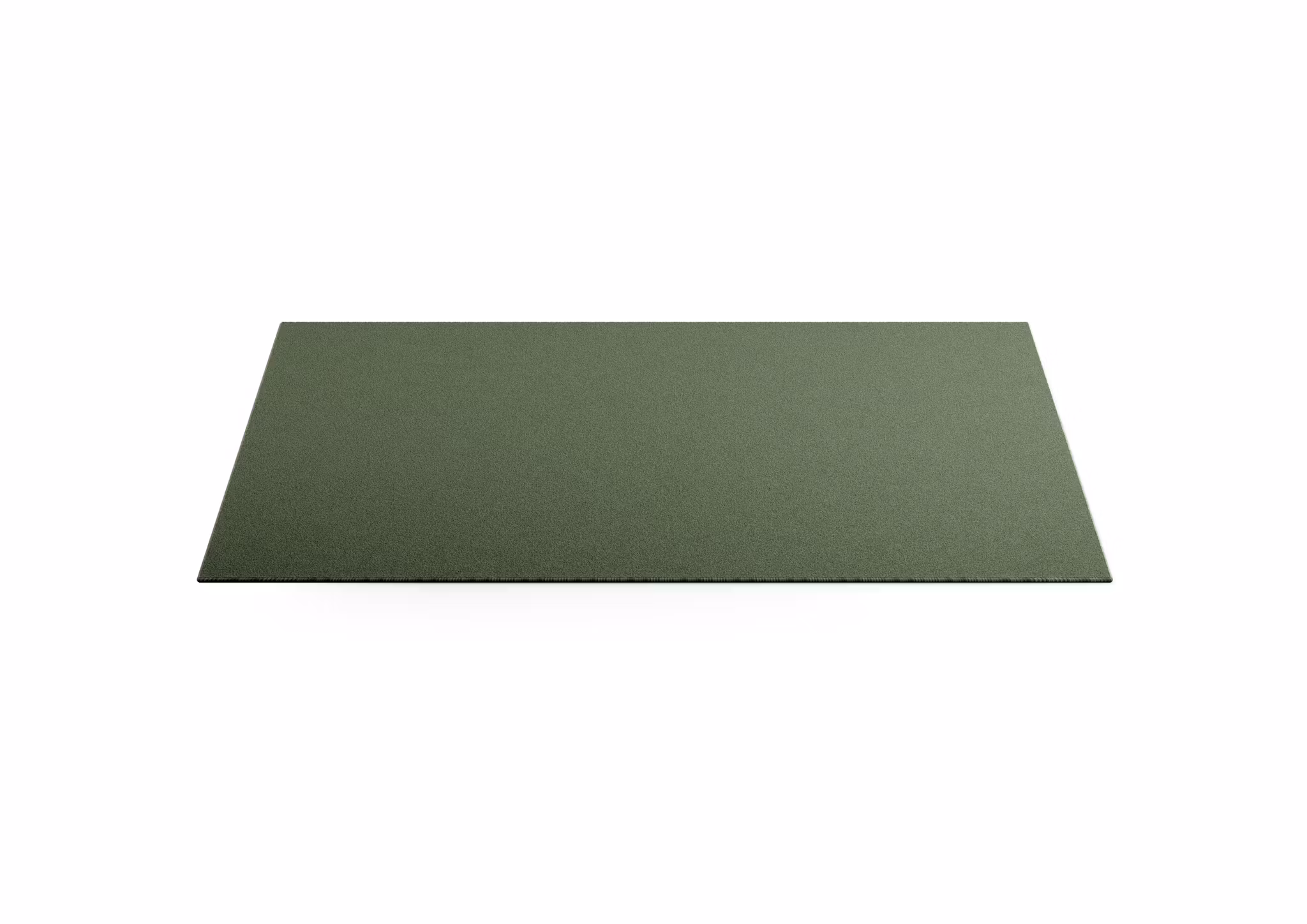 Matta i 100 % polyamid, skuren lugg 6 mm, total höjd 8 mm. 250x250 cm. Halkfri baksida av latex. Langetterad. Kan användas på torra värmegolv.Bronsgrön