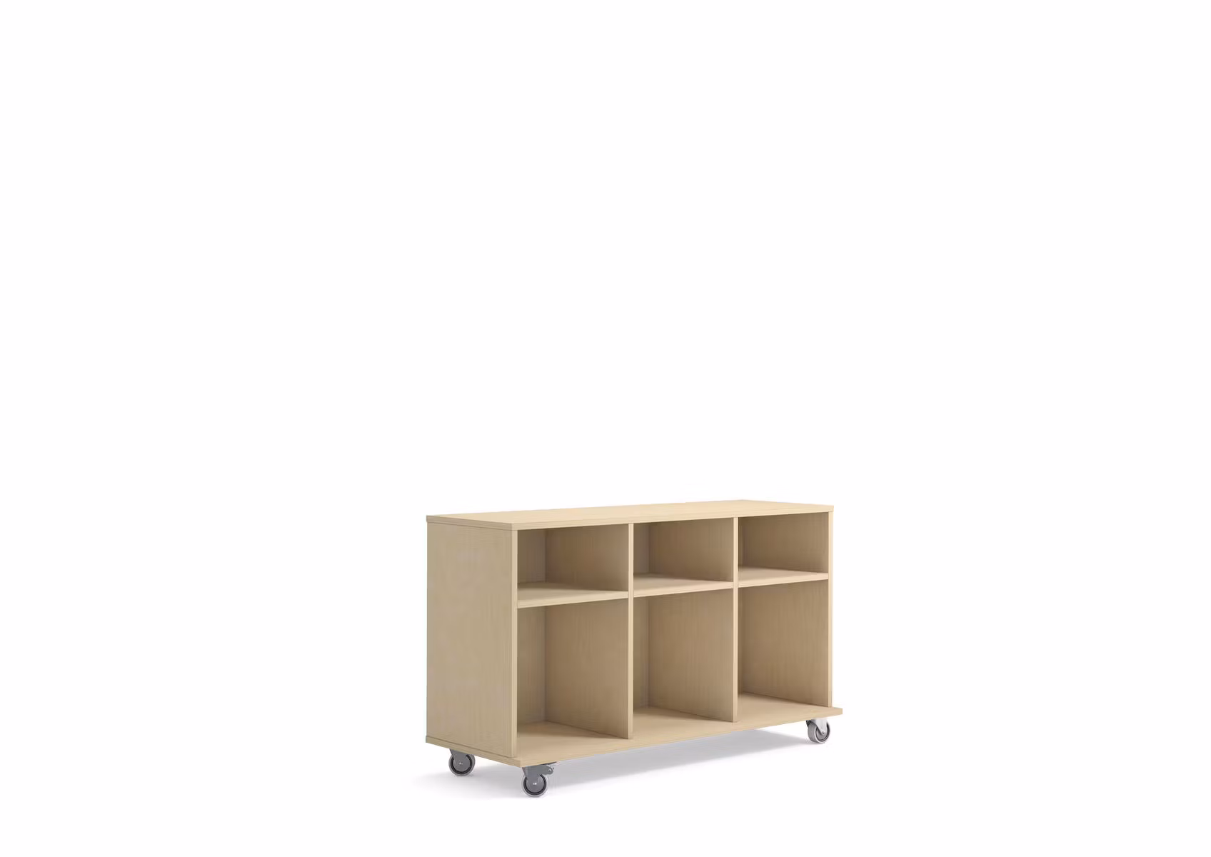 Levereras färdigmonterad. Denna stomme i björk har tre stora och tre små öppna hyllor, med bottenplatta som är något bredare för ökad stabilitet. 4 hjul varav t